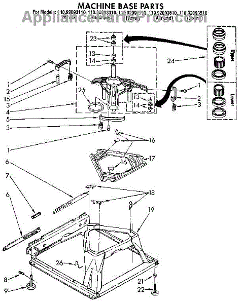 Parts for Kenmore 110.92093310 (11092093310, 110 92093310): Machine Base Parts