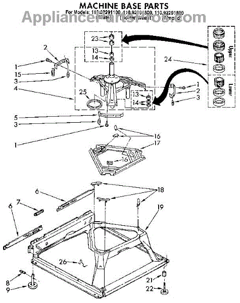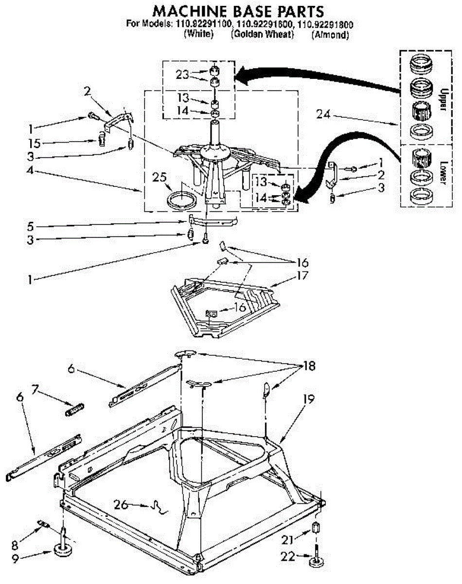 Parts for Kenmore 110.92291100 (11092291100, 110 92291100): Machine Base Parts