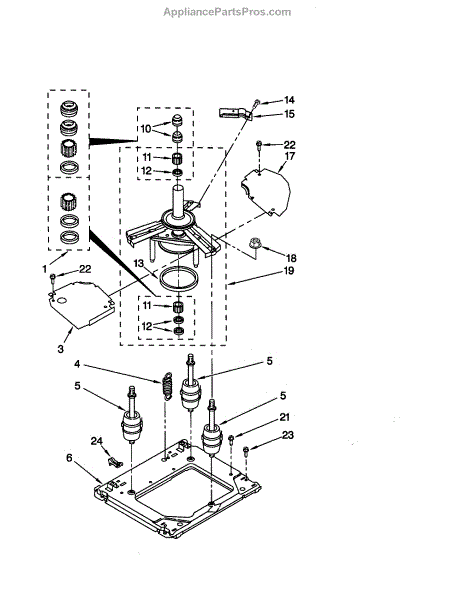 The Sound Dampening Ring is an OEM replacement part for Whirlpool washing machines. Located within the clutch housing, it serves to minimize noise transmission from internal components. Causes relate to years of absorbing internal impacts fatiguing the damping material. Buildup of grime and detergent residue in its ridges may diminish noise-isolating effectiveness over time. Symptoms of failure include: