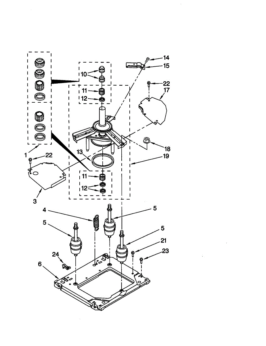 Welded base assembly forms the lower chassis of your washer. Replace if bent, rusted, cracked, or damaged to restore structural support and alignment.