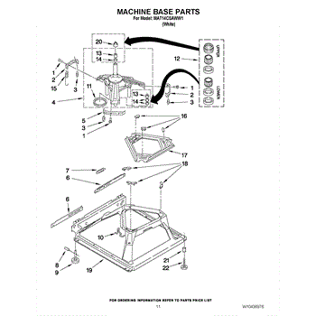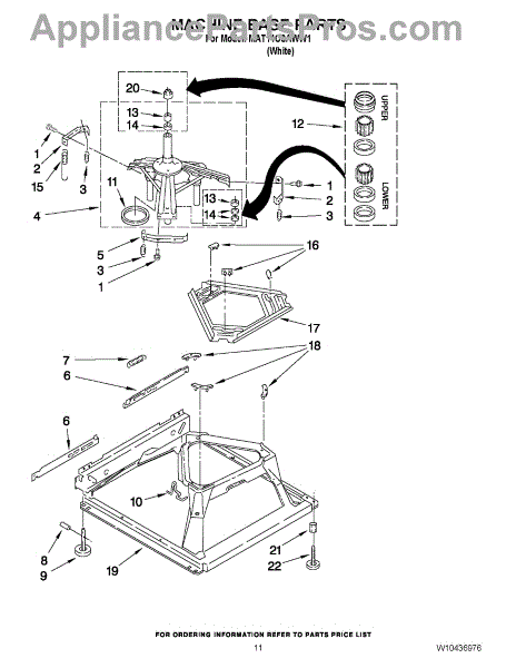 Used for direct drive washing machines. Complete assembly includes 2 level mechanism links, 1 level mechanism spring, 1 knurled pin, 2 rear feet, 1 pad plate, 1 suspension plate, 1 base pad, and 1 suspension spring retainer.