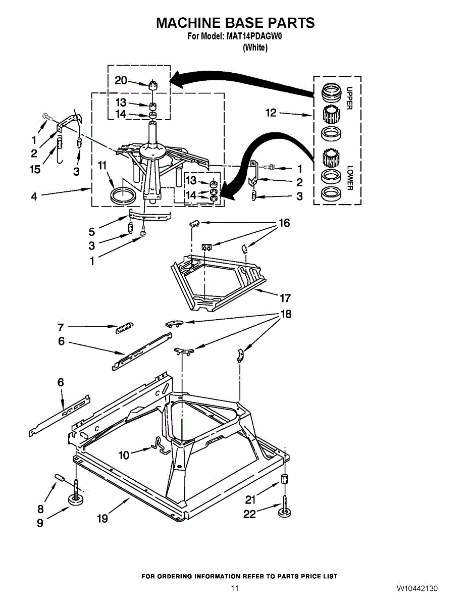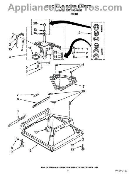 Used for direct drive washing machines. Complete assembly includes 2 level mechanism links, 1 level mechanism spring, 1 knurled pin, 2 rear feet, 1 pad plate, 1 suspension plate, 1 base pad, and 1 suspension spring retainer.