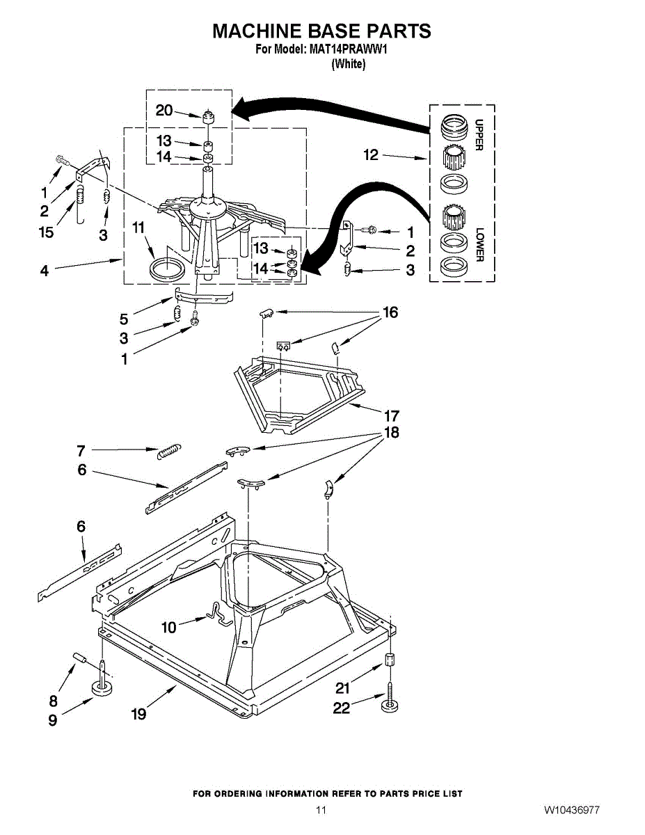 Used for direct drive washing machines. Complete assembly includes 2 level mechanism links, 1 level mechanism spring, 1 knurled pin, 2 rear feet, 1 pad plate, 1 suspension plate, 1 base pad, and 1 suspension spring retainer.