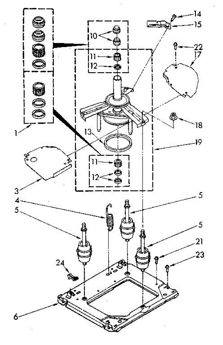 Welded base assembly forms the lower chassis of your washer. Replace if bent, rusted, cracked, or damaged to restore structural support and alignment.