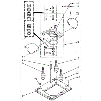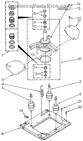 Welded base assembly forms the lower chassis of your washer. Replace if bent, rusted, cracked, or damaged to restore structural support and alignment.