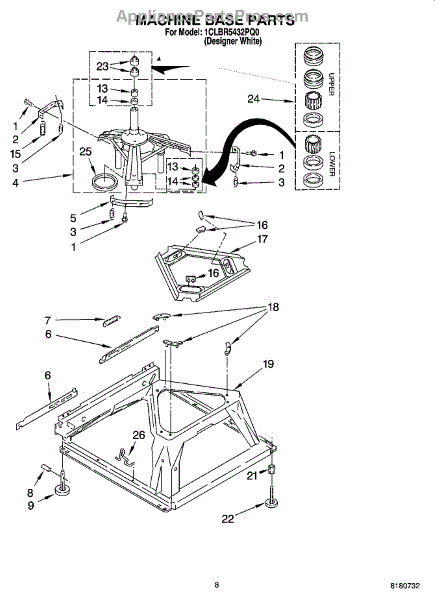 Parts for Whirlpool 1CLBR5432PQ0: 05 - Machine Base Parts