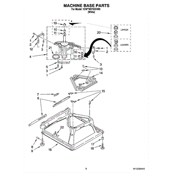 The Spring Mounting Bracket is an OEM part for Whirlpool washing machines. It is located at the bottom of the appliance, near the base. It provides a secure attachment point for the suspension springs, which help absorb vibrations and stabilize the drum during operation.