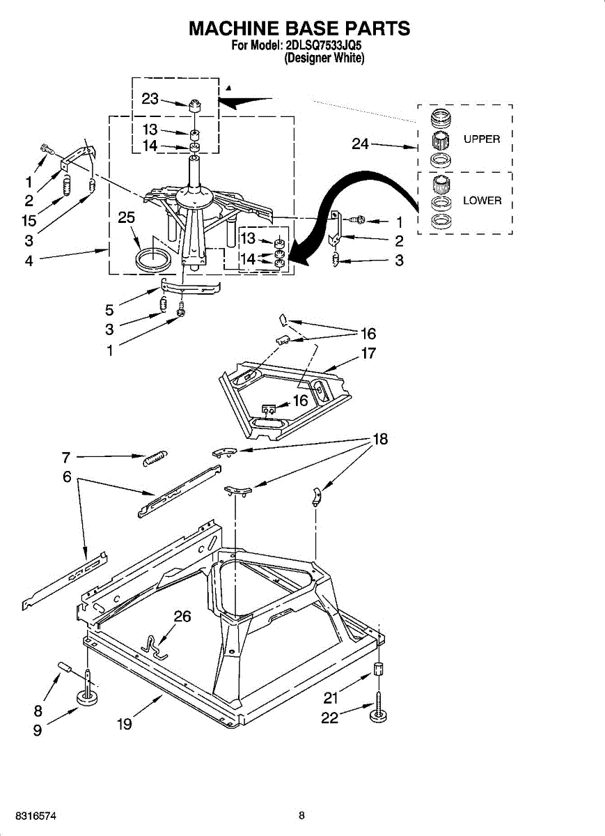 Parts for Whirlpool 2DLSQ7533JQ5: 04 - Machine Base Parts