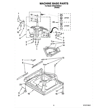 Used for direct drive washing machines. Complete assembly includes 2 level mechanism links, 1 level mechanism spring, 1 knurled pin, 2 rear feet, 1 pad plate, 1 suspension plate, 1 base pad, and 1 suspension spring retainer.