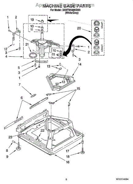 Parts for Whirlpool 3XWTW5905SW0: 05 - Machine Base Parts