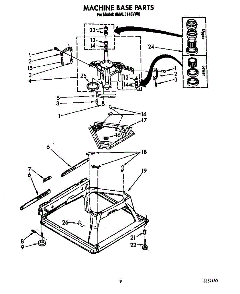 Supports the spin basket on the center post for smooth, quiet rotation. Replace if your washer is noisy, vibrating excessively, or has poor spin performance.