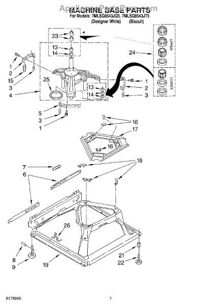 Parts for Whirlpool 7MLSQ8543JQ5: 04 - Machine Base Parts