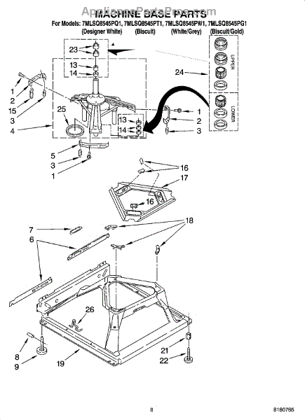 Parts for Whirlpool 7MLSQ8545PT1: 05 - Machine Base Parts