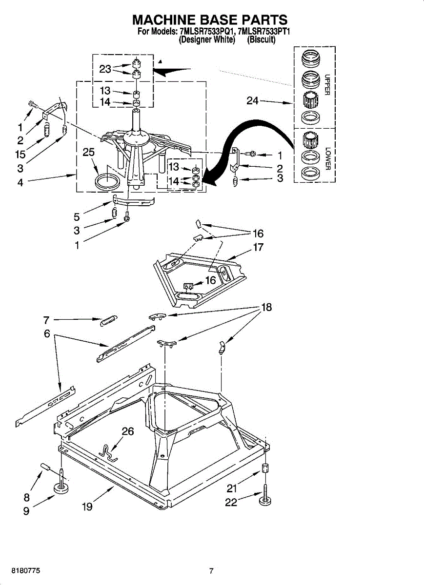 Parts for Whirlpool 7MLSR7533PQ1: 04 - Machine Base Parts