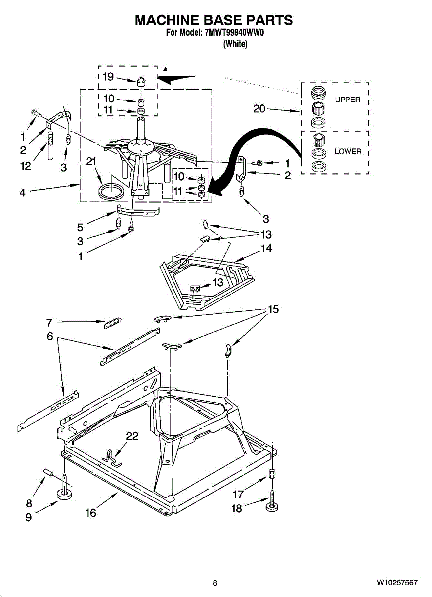 Parts for Whirlpool 7MWT99840WW0: 05 - Machine Base Parts
