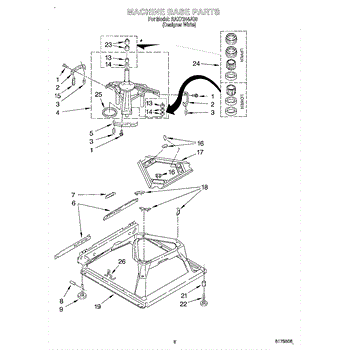 Complete base frame assembly for direct drive washers. Includes structural support components, leveling links, springs, and mounting hardware. Replaces rusted, cracked, or broken frames.