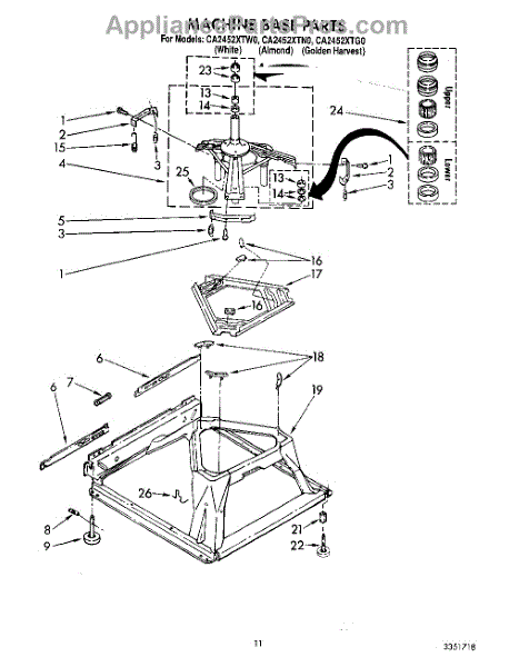 Base for washers. Supports the entire washer assembly and houses internal components. Replace if cracked, warped, or damaged from drops or impacts.