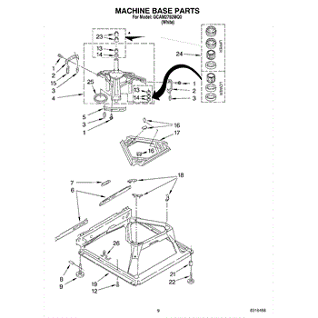 Used for direct drive washing machines. Complete assembly includes 2 level mechanism links, 1 level mechanism spring, 1 knurled pin, 2 rear feet, 1 pad plate, 1 suspension plate, 1 base pad, and 1 suspension spring retainer.