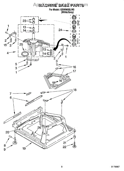 Parts for Whirlpool GSW9650LW0: 05 - Machine Base Parts