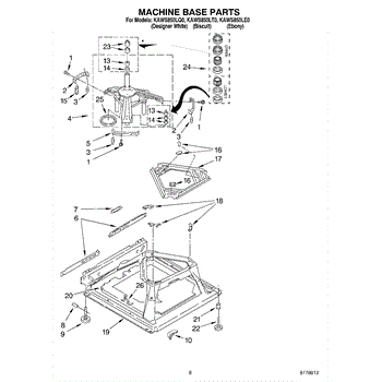 Used for direct drive washing machines. Complete assembly includes 2 level mechanism links, 1 level mechanism spring, 1 knurled pin, 2 rear feet, 1 pad plate, 1 suspension plate, 1 base pad, and 1 suspension spring retainer.