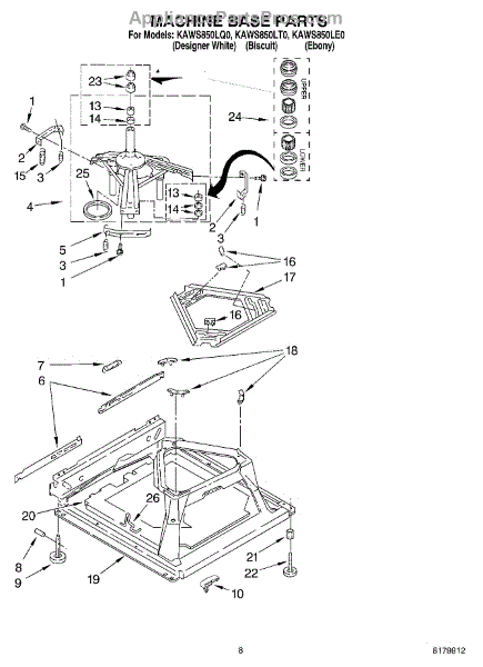 Parts for Kitchenaid KAWS850LQ0: 05 - Machine Base Parts