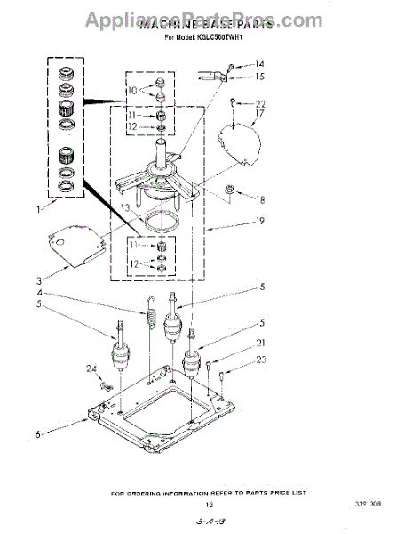 The Bearing and Seal Kit is an OEM component for Whirlpool and KitchenAid front-load washing machines. The kit includes 2 center post bearings, 3 agitator shaft seals, and 1 center post seal. These internal seals help retain lubrication inside the motor shaft housing, while the bearings allow for smooth rotation of critical components like the drive pulley. Continuous belt rubbing and water exposure diminish their lifespan over time. Symptoms of worn motor seals or bearings include:
