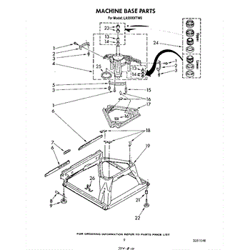 Used for direct drive washing machines. Complete assembly includes 2 level mechanism links, 1 level mechanism spring, 1 knurled pin, 2 rear feet, 1 pad plate, 1 suspension plate, 1 base pad, and 1 suspension spring retainer.