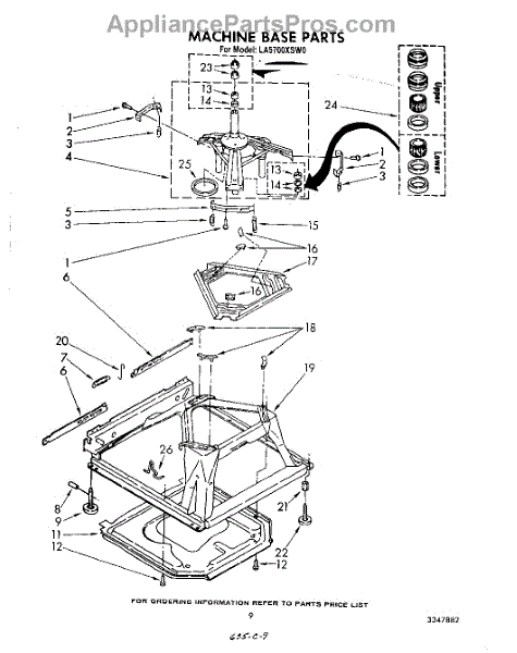 Used for direct drive washing machines. Complete assembly includes 2 level mechanism links, 1 level mechanism spring, 1 knurled pin, 2 rear feet, 1 pad plate, 1 suspension plate, 1 base pad, and 1 suspension spring retainer.