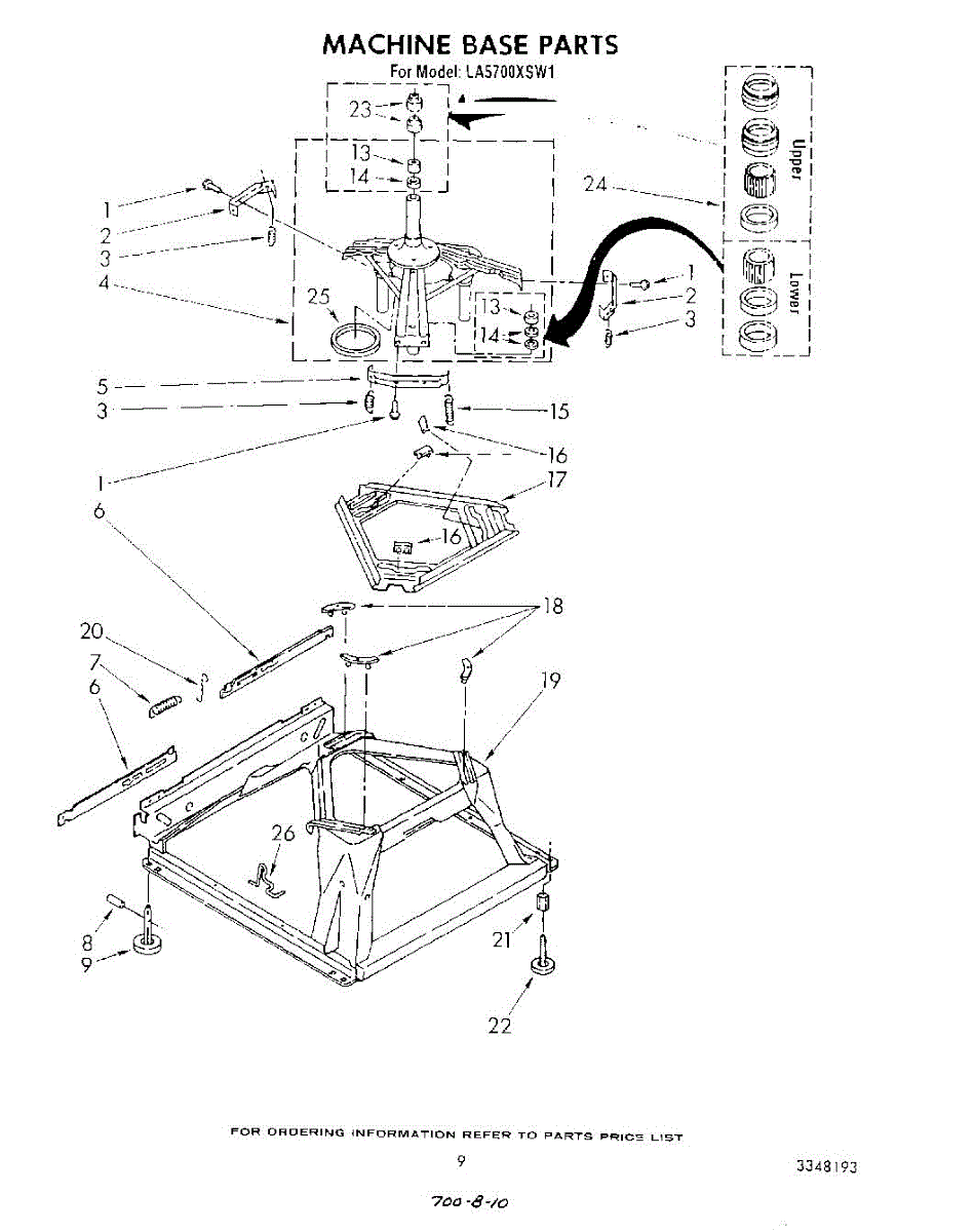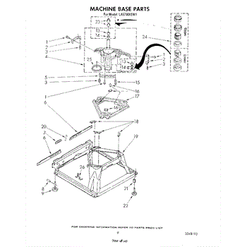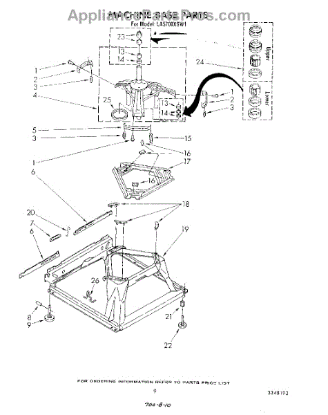 Used for direct drive washing machines. Complete assembly includes 2 level mechanism links, 1 level mechanism spring, 1 knurled pin, 2 rear feet, 1 pad plate, 1 suspension plate, 1 base pad, and 1 suspension spring retainer.