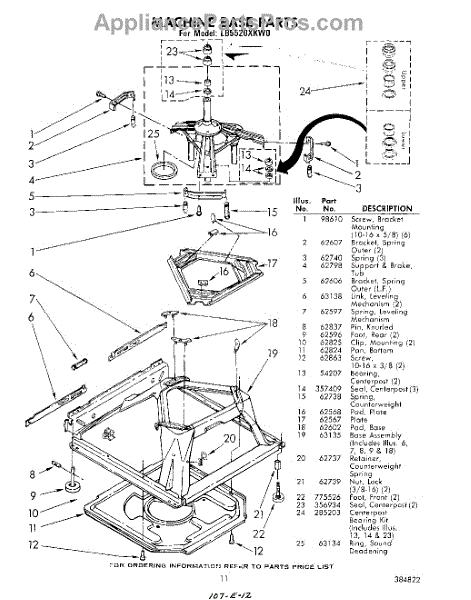 Parts for Whirlpool LB5520XKW0: 11 - Machine Base Parts