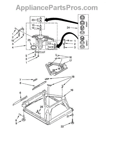 Base for washers. Supports the entire washer assembly and houses internal components. Replace if cracked, warped, or damaged from drops or impacts.