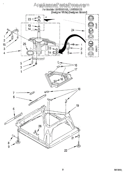 The Sound Dampening Ring is an OEM replacement part for Whirlpool washing machines. Located within the clutch housing, it serves to minimize noise transmission from internal components. Causes relate to years of absorbing internal impacts fatiguing the damping material. Buildup of grime and detergent residue in its ridges may diminish noise-isolating effectiveness over time. Symptoms of failure include: