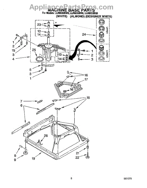 Parts for Whirlpool LLR8233BN0: 06 - Machine Base Parts