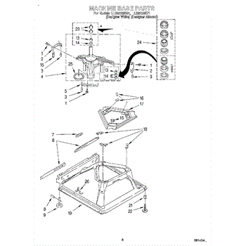 Used for direct drive washing machines. Complete assembly includes 2 level mechanism links, 1 level mechanism spring, 1 knurled pin, 2 rear feet, 1 pad plate, 1 suspension plate, 1 base pad, and 1 suspension spring retainer.