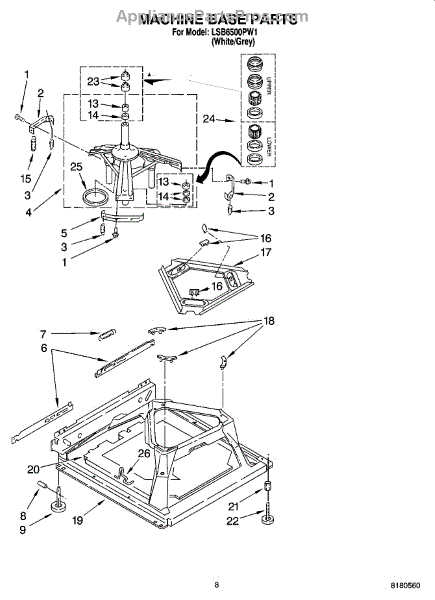 Parts for Whirlpool LSB6500PW1: 05 - Machine Base Parts
