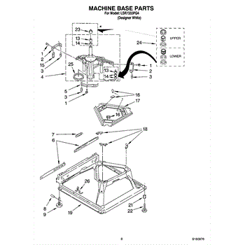 Used for direct drive washing machines. Complete assembly includes 2 level mechanism links, 1 level mechanism spring, 1 knurled pin, 2 rear feet, 1 pad plate, 1 suspension plate, 1 base pad, and 1 suspension spring retainer.