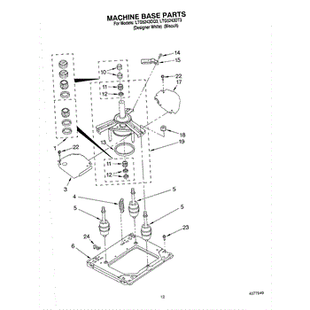This welded base assembly forms the lower chassis of the unit, supporting the cabinet and mounted components. Replacing a bent, rusted, or damaged base restores structural integrity, alignment, and smoother, quieter operation.