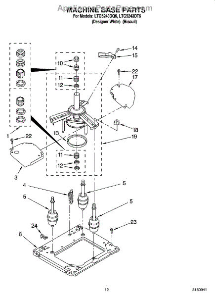 Parts for Whirlpool LTG5243DT6: 09 - Machine Base Parts