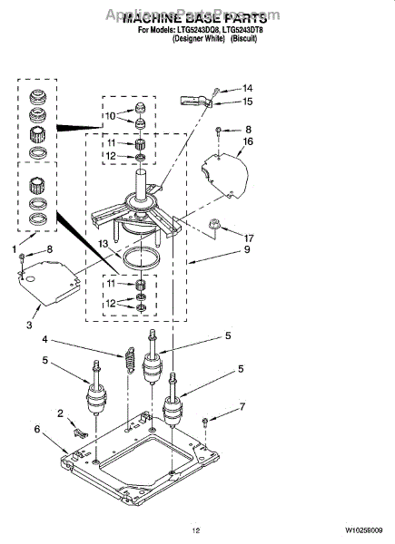 Parts for Whirlpool LTG5243DT8: 09 - Machine Base Parts