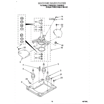 This welded base assembly forms the lower chassis of the unit, supporting the cabinet and mounted components. Replacing a bent, rusted, or damaged base restores structural integrity, alignment, and smoother, quieter operation.