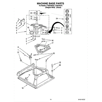 Base assembly for laundry center units. Structural support platform that holds washer and dryer components. Replace if cracked, rusted, or damaged.