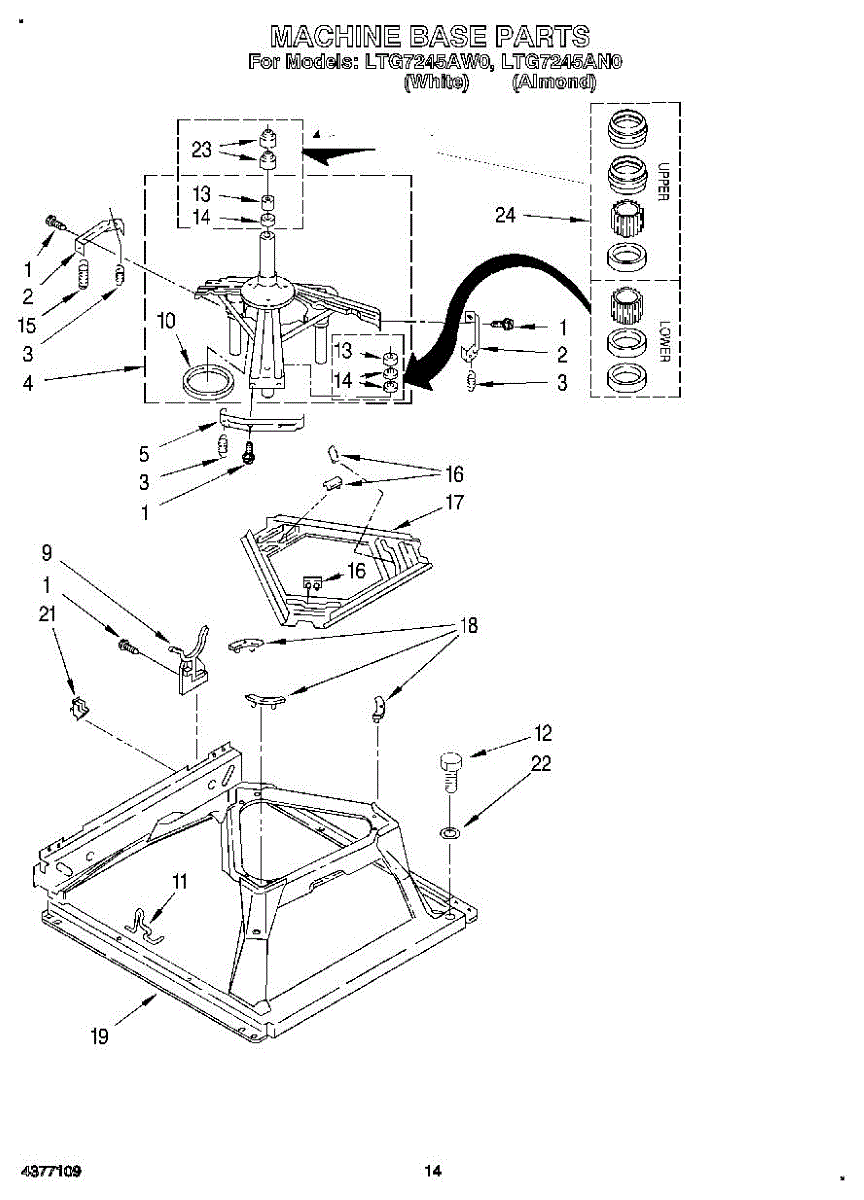Supports the spin basket on the center post for smooth, quiet rotation. Replace if your washer is noisy, vibrating excessively, or has poor spin performance.