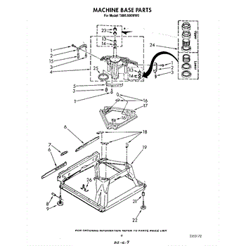 Used for direct drive washing machines. Complete assembly includes 2 level mechanism links, 1 level mechanism spring, 1 knurled pin, 2 rear feet, 1 pad plate, 1 suspension plate, 1 base pad, and 1 suspension spring retainer.