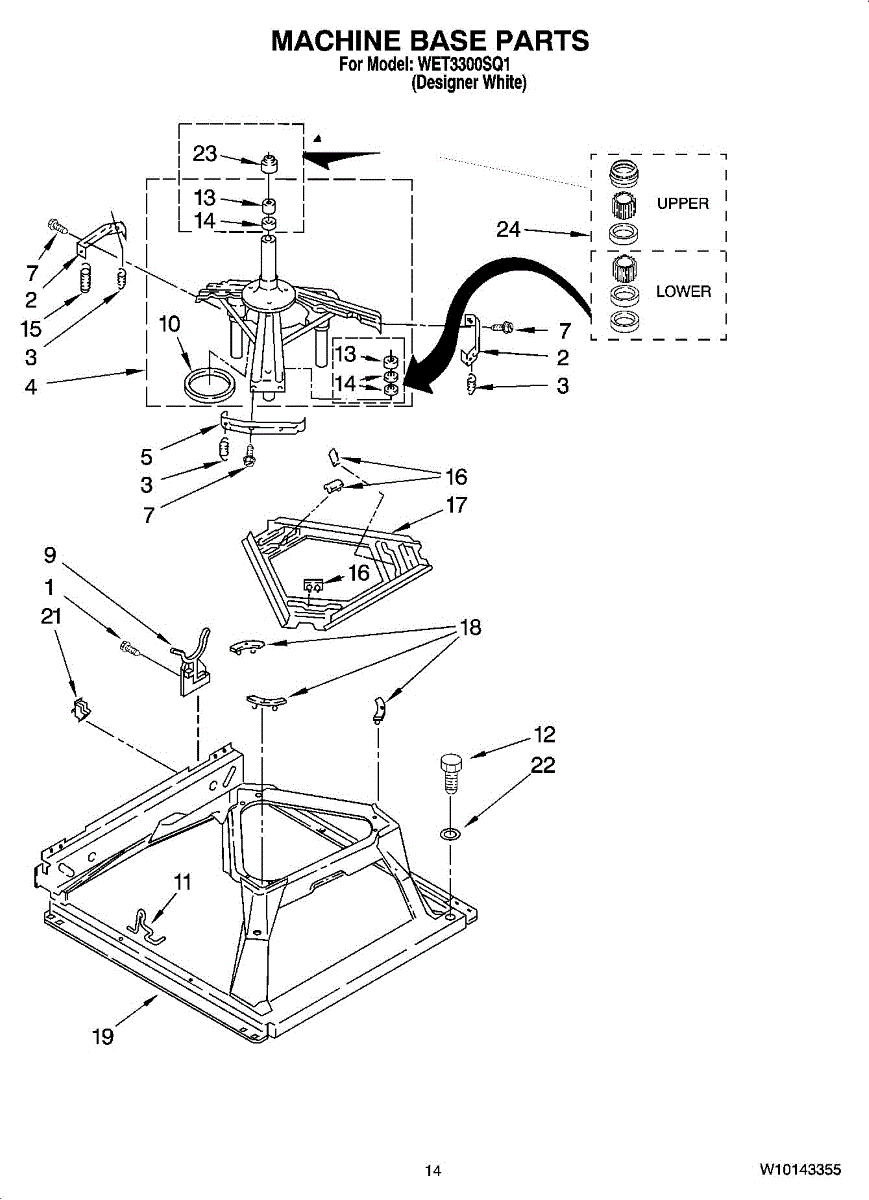 Supports the spin basket on the center post for smooth, quiet rotation. Replace if your washer is noisy, vibrating excessively, or has poor spin performance.