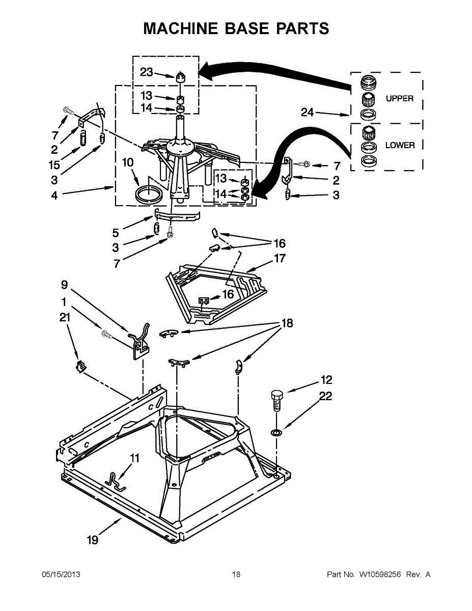 Secures suspension springs to the washer tub assembly. Replace if cracked, worn, or missing to prevent tub instability during wash and spin cycles.