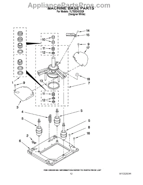 The Bearing and Seal Kit is an OEM component for Whirlpool and KitchenAid front-load washing machines. The kit includes 2 center post bearings, 3 agitator shaft seals, and 1 center post seal. These internal seals help retain lubrication inside the motor shaft housing, while the bearings allow for smooth rotation of critical components like the drive pulley. Continuous belt rubbing and water exposure diminish their lifespan over time. Symptoms of worn motor seals or bearings include: