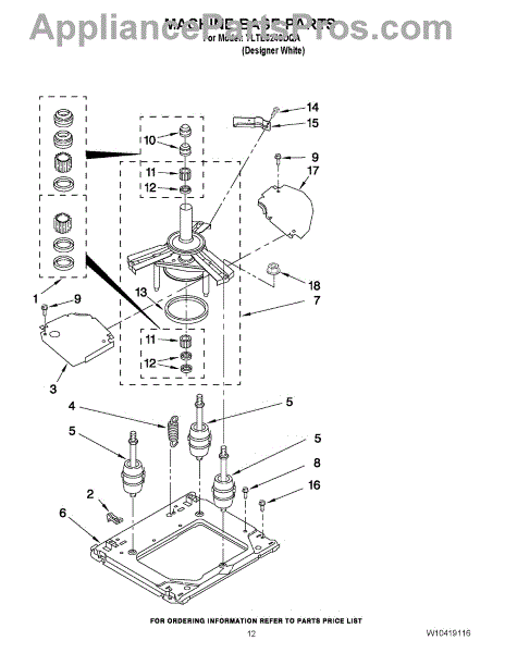 The Bearing and Seal Kit is an OEM component for Whirlpool and KitchenAid front-load washing machines. The kit includes 2 center post bearings, 3 agitator shaft seals, and 1 center post seal. These internal seals help retain lubrication inside the motor shaft housing, while the bearings allow for smooth rotation of critical components like the drive pulley. Continuous belt rubbing and water exposure diminish their lifespan over time. Symptoms of worn motor seals or bearings include: