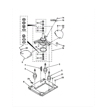 This welded base assembly forms the lower chassis of the unit, supporting the cabinet and mounted components. Replacing a bent, rusted, or damaged base restores structural integrity, alignment, and smoother, quieter operation.