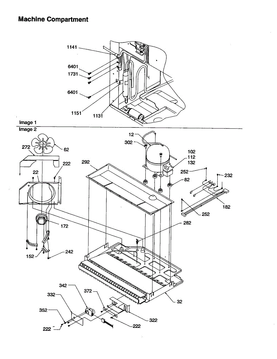 Parts for Amana DRB2101AC-PDRB2101AC0: Machine Compartment Parts