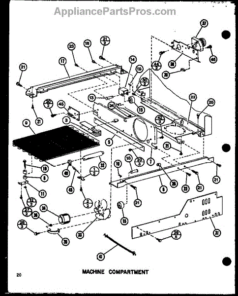 Parts for Amana SLDI25F-P7642104W: Machine Compartment Parts